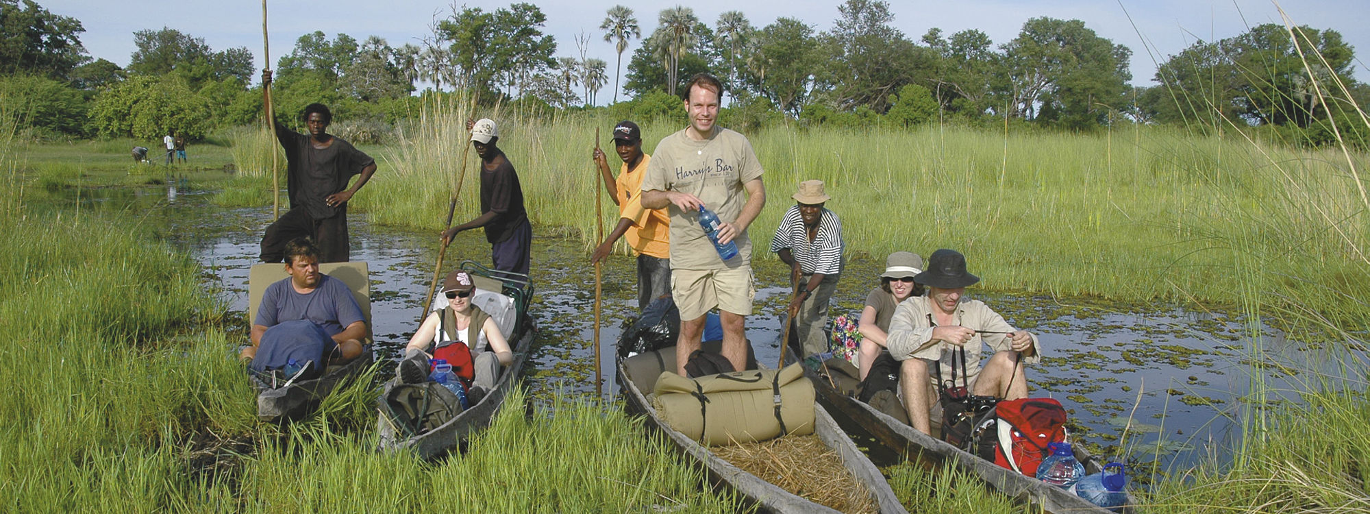 De lokale gidsen nemen je diep het hart van de Okavangodelta in op mokoro’s (boomstamkano’s). De delta ontstaat wanneer water uit de Angolese hooglanden over de vlakke Kalahari woestijnzanden van Botswana stroomt en zo een delicate, groene oase voor vogels en wilde dieren creëert. Je gaat wildkamperen op afgelegen eilanden in deze fascinerend dynamische omgeving. De lokale gidsen vertellen je meer over hun levensstijl en cultuur. Opmerking: Je laat je hoofdbagage achter in Maun en neemt alleen een klein stuk bagage (rugzak, handbagage) mee met dingen die je nodig hebt voor de komende 2 nachten op het eiland. De reis vanaf het vasteland vindt plaats in traditionele gegraven kano's (mokoro's), die geen grotere bagage toelaten.